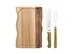 ESPECIFICAÇÕES DO PRODUTO:Lâminas de aço inox. As lâminas das facas têm maior durabilidade do fio devido ao tratamento térmico. As lâminas dos garfos conta com maior espessura e uma estampagem do aço que garante maior resistência, evitando deformações. Os cabos são de madeira natural. Rebites de alumínio.Tábua de madeira ideal para cortar e servir.