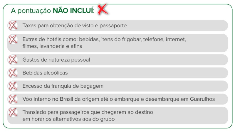 - Os pontos deste resgate consideram a parte terrestre da programação ao longo dos dias, com hospedagem*, por pessoa, em apartamento duplo (2 pessoas dividindo o mesmo apartamento). - Os pontos deste resgate considera passagem aérea apenas do trecho internacional (SP/Chicago/SP), em classe econômica, sem marcação de assento **